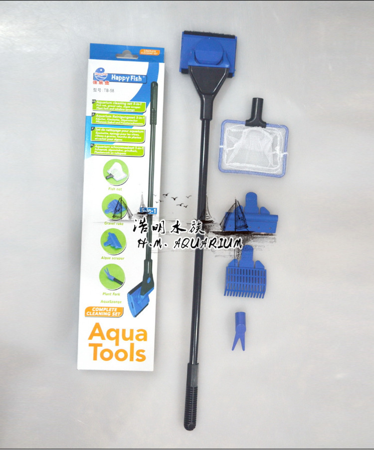 Happy Fish pakaian pembersih tangki ikan bersih scraping pisau ganggang sedotan Air klip tangki ikan sikat kaca wiper Lima-in-one alat