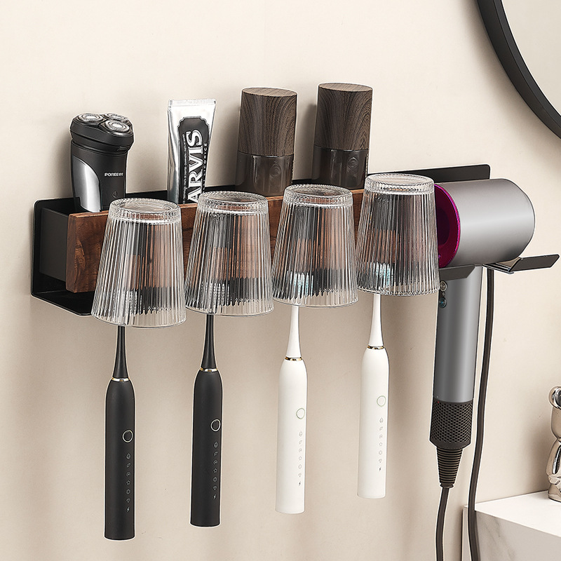 Sikat gigi listrik walnut cangkir sikat gigi rak rak perlengkapan pengering rambut gantungan dinding kamar mandi bebas lubang