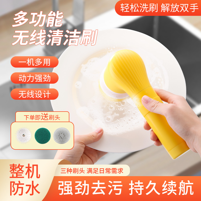 Sikat pembersih elektrik genggam multifungsi, sikat pembersih elektrik rumah tangga, sikat panci cuci piring dapur, sikat bak mandi lantai kamar mandi