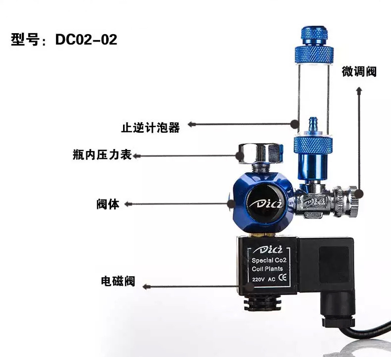 Diz meteran rumput air, katup karbon dioksida silinder rumput, alat busa terbalik kalsium CO2, katup solenoid meter tunggal dan ganda