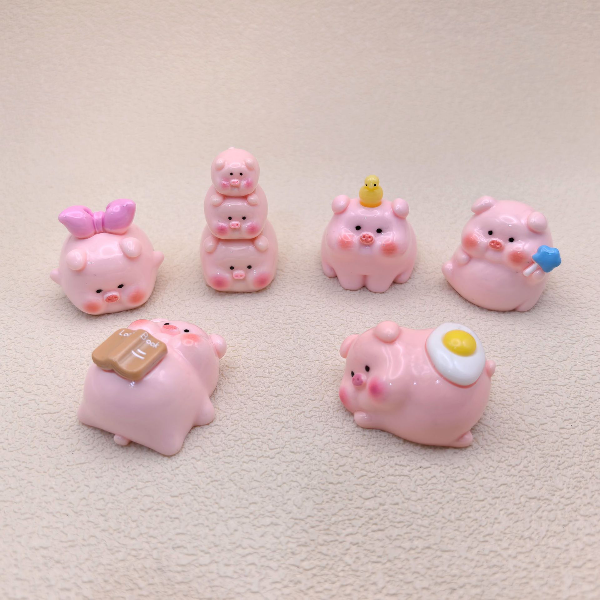 Aksesoris DIY babi merah muda lucu kartun 3D, ornamen resin untuk mobil, lanskap mini, dekorasi meja, figurine imut dalam kemasan blind bag