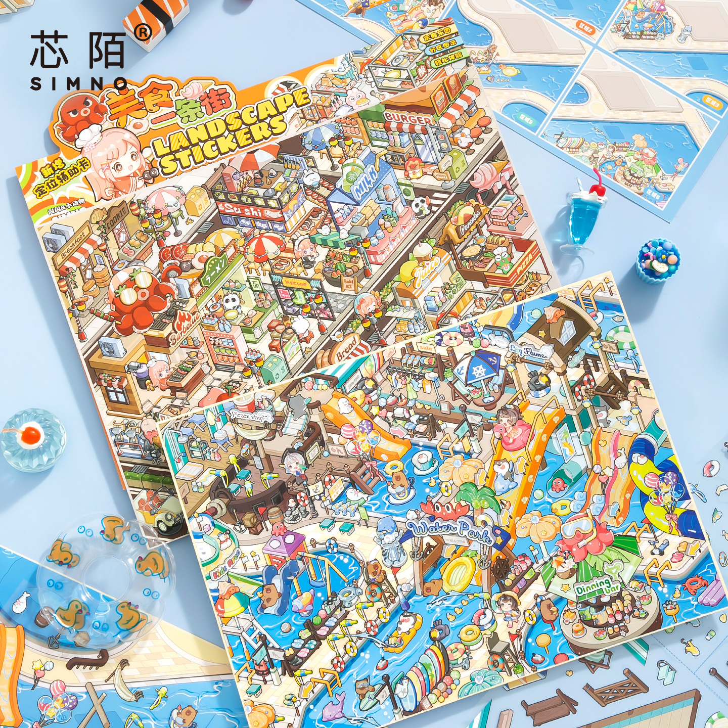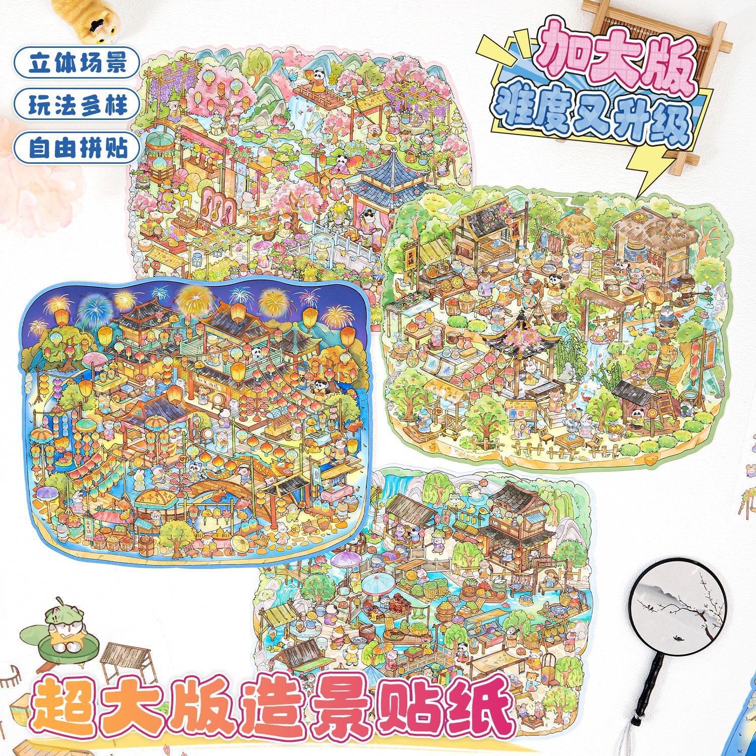霁旅芯陌 乐园系列造景贴纸 大号微缩场景贴创意拼贴解压造景贴画
