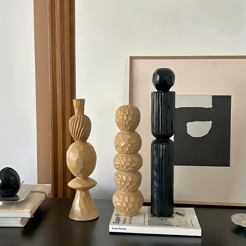 欧式轻奢几何树脂仿木头雕塑组合艺术装饰摆件客厅卧室家居装饰品