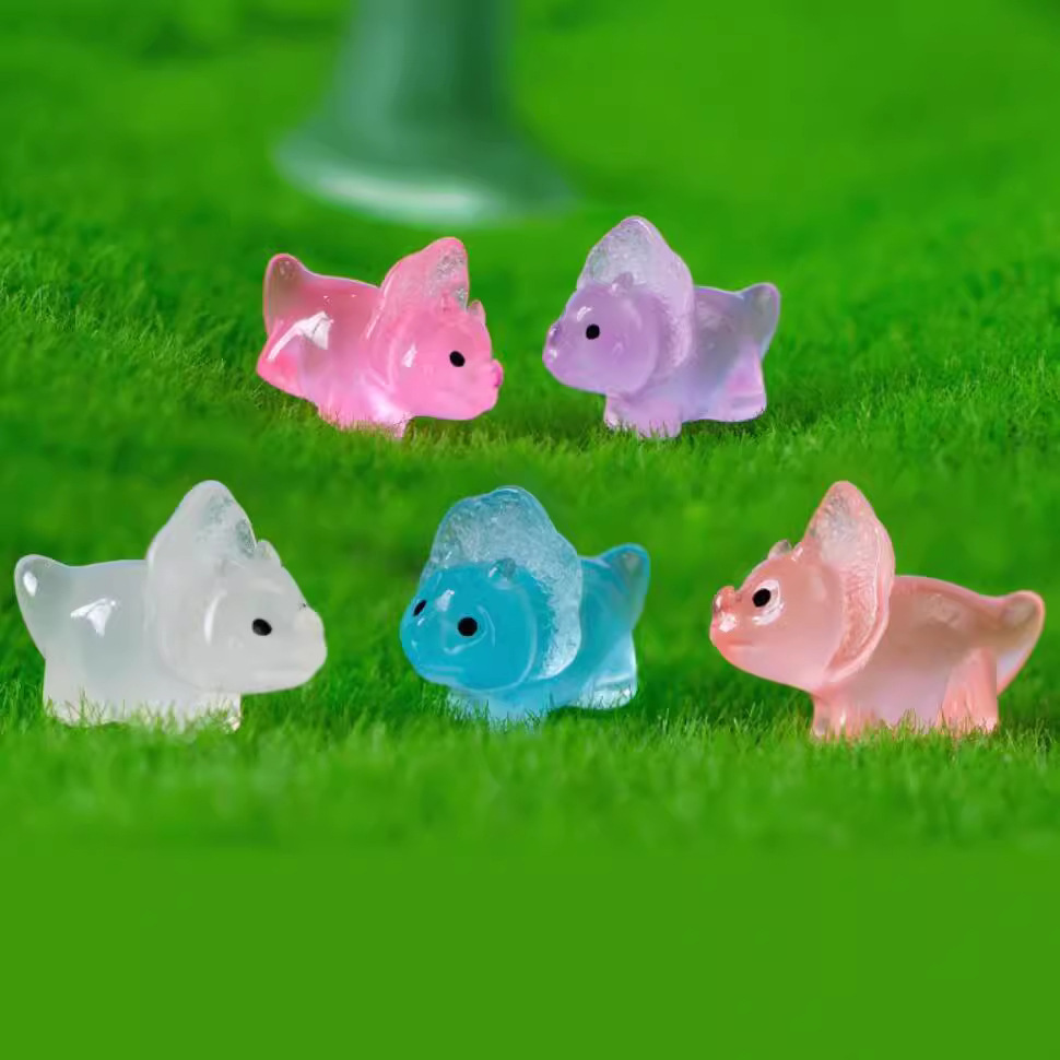 Dekorasi Dinosaurus Bercahaya Lanskap Mikro Aksesoris Resin Kerajinan Berkebun Lumut Ornamen Triceratops
