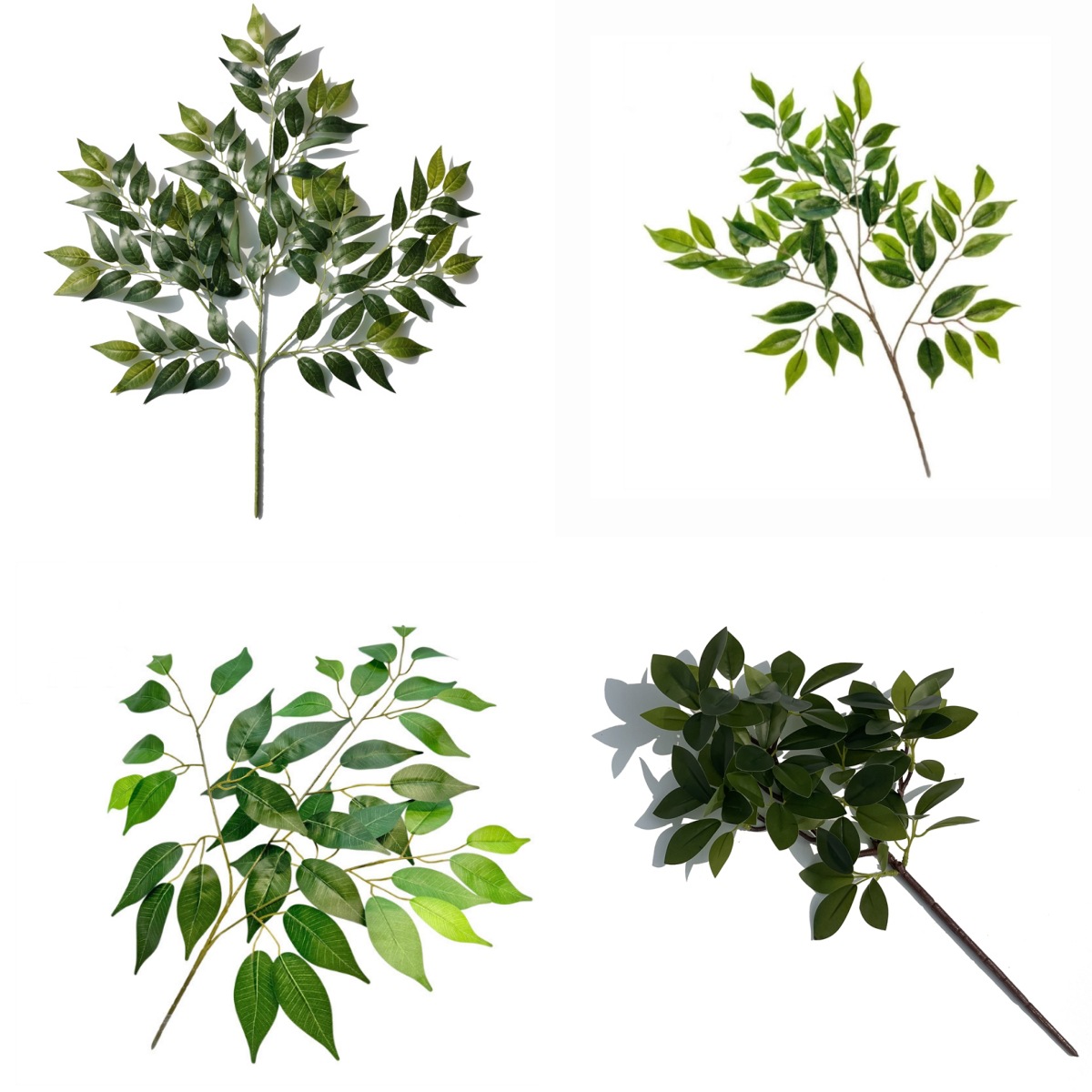 Daun hijau buatan ujung alis daun Prancis Banyan Elm daun buatan cabang Banyan taman lanskap pohon mati aksesoris dekoratif