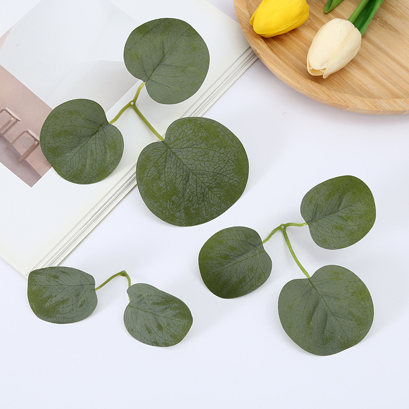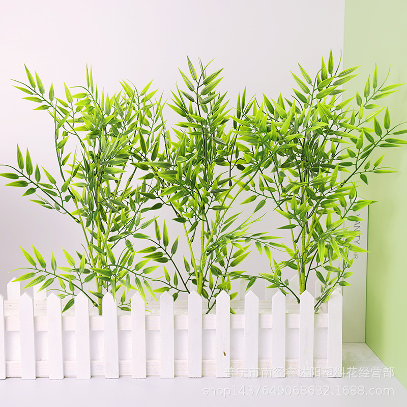 Tanaman hijau buatan, tiga garpu pengaturan kayu putih, aksesori rumah penghijauan set daun dalam stok