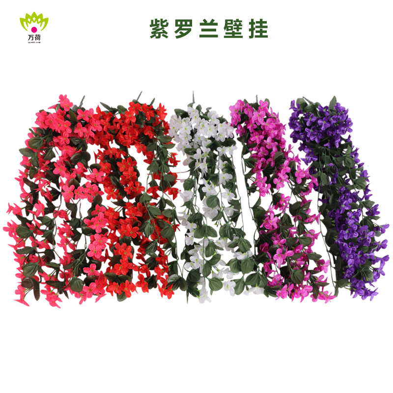 Pabrik grosir Violet hiasan dinding tema restoran dekorasi tanaman luar ruangan set dinding bunga palsu rotan lintas batas