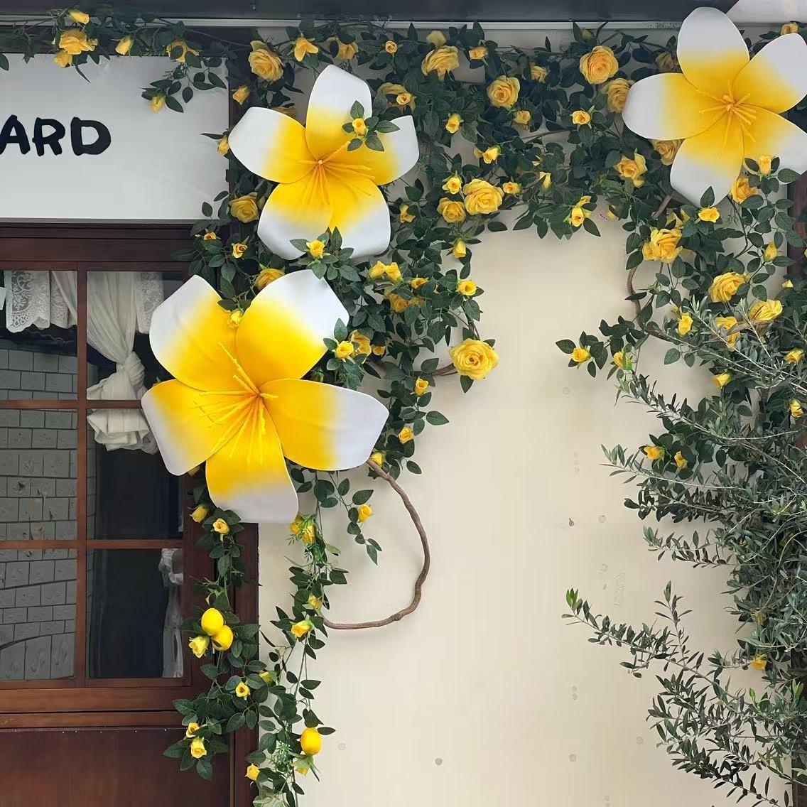 Bunga Telur Tahan Air Bunga Kertas Busa Dekorasi Pintu Jendela Hiasan Lemon Bunga Bunga Mawar Kuning Besar EVA