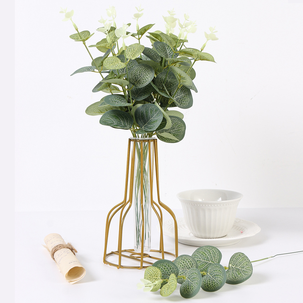 Tanaman kayu putih tunggal buatan dekorasi tanaman hijau kotak hadiah Aksesori dekorasi karangan bunga properti fotografi daun uang