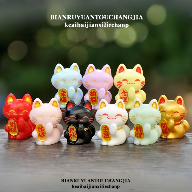 Ornamen Kucing Lucu Keberuntungan Ornamen Pemandangan Miniatur Resin Pemandangan Mikro Ornamen Kecil Desktop Mobil