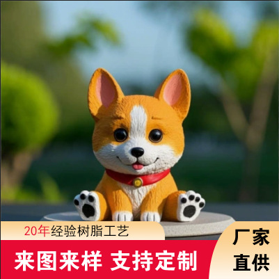 Lanskap mikro taman anak anjing, ornamen resin kartun lucu kreatif dengan lampu matahari hadiah kerajinan desktop grosir