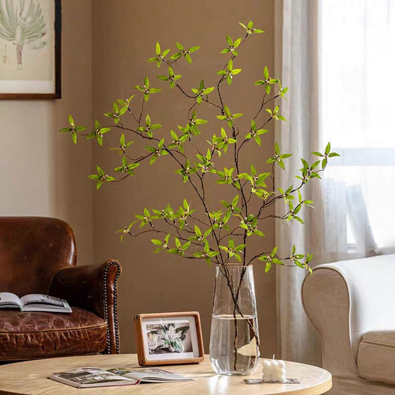 Imitasi Daun Tanaman Hijau Daun Delima Cabang Kering Dekorasi Ruang Tamu Seni Bunga Sederhana Dekorasi Toko Bunga Sutra Pakaian Lunak Lansekap Toko Bunga