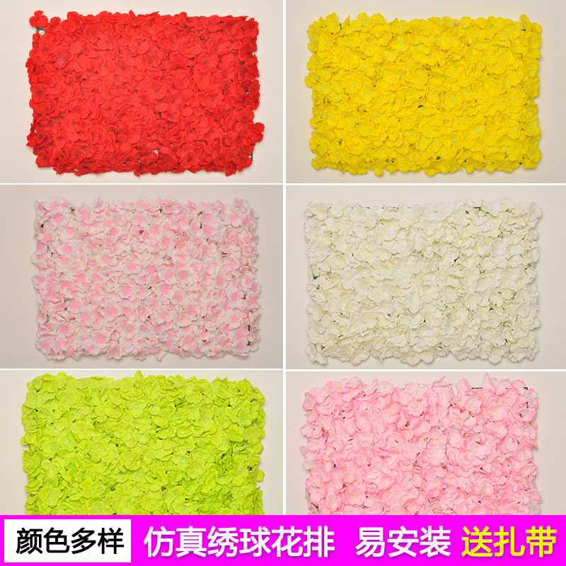Grosir bunga hydrangea baris sutra kain bunga bola bunga segar dinding gantung bunga warna-warni dinding gantung tanaman bunga palsu empat kelopak
