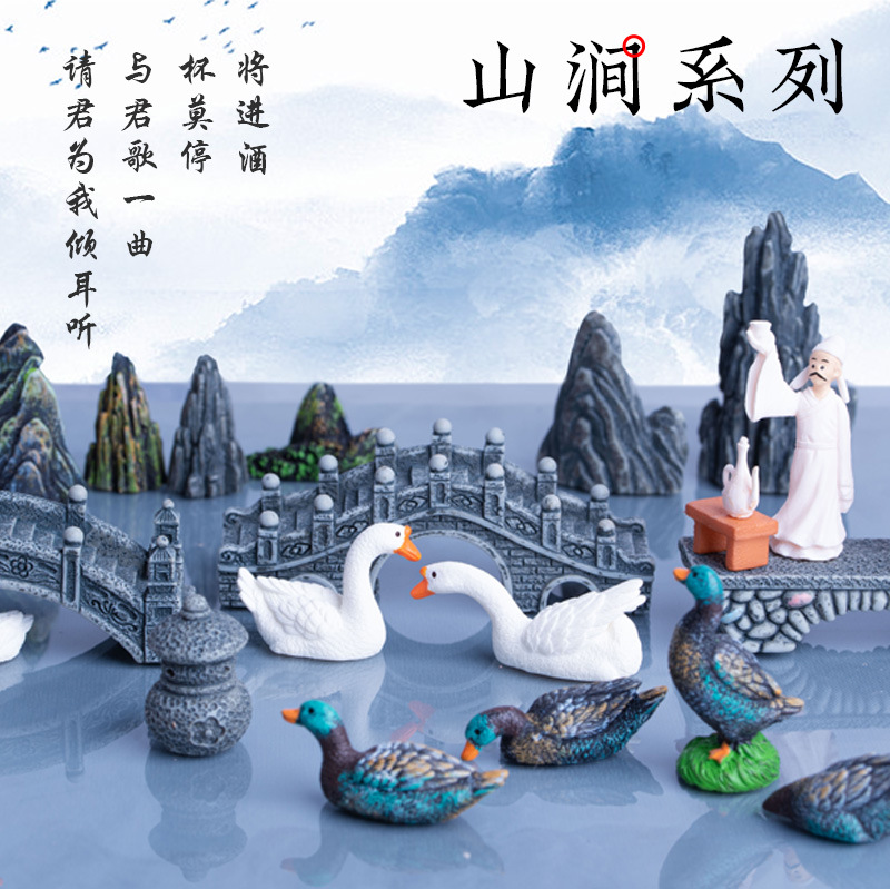 Dekorasi teras halaman taman pemandangan luar ruangan lanskap mikro hewan bebek Cole dekorasi tangki ikan kuno