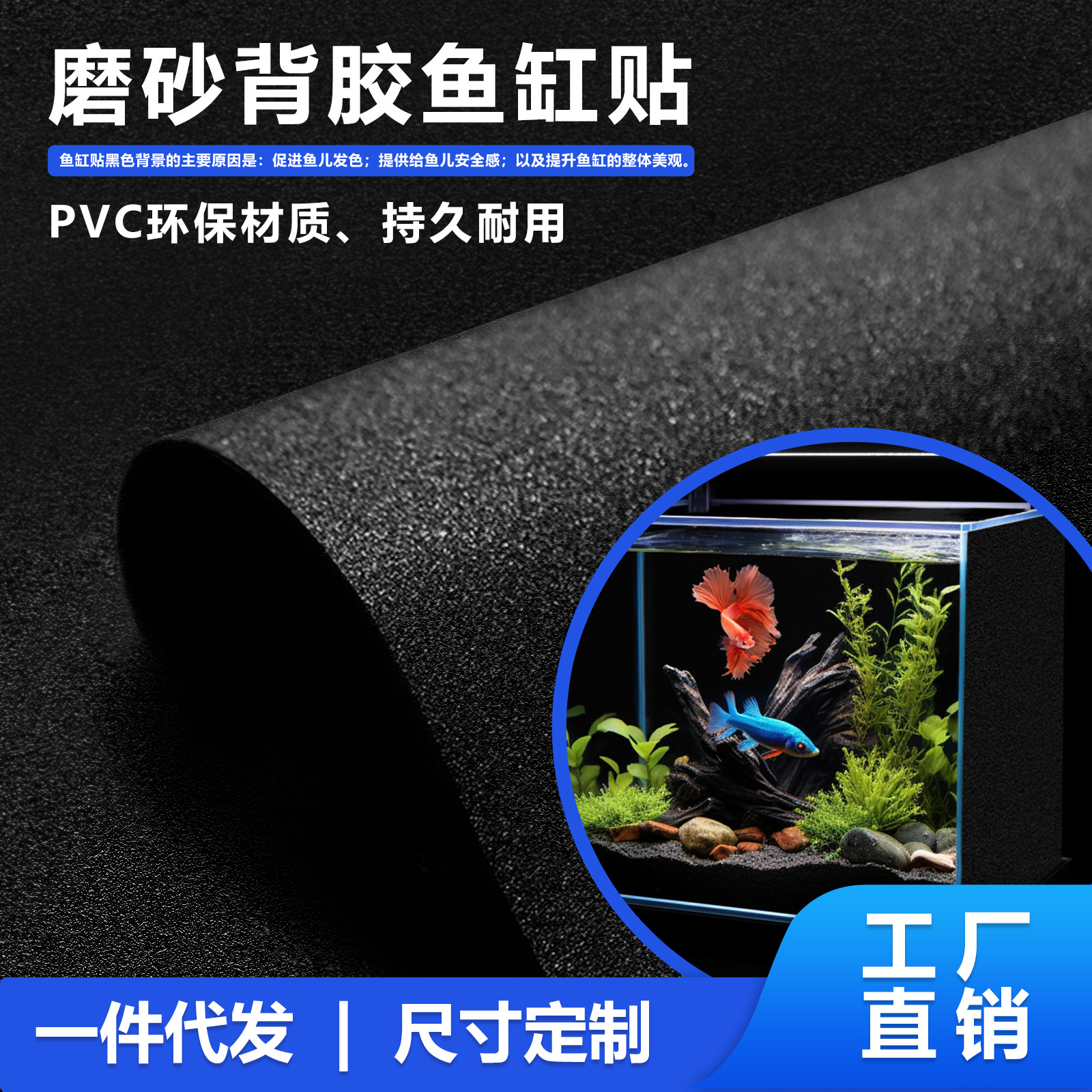 Stiker Latar Belakang Tangki Ikan Hitam Matte PVC Tidak Tembus dengan Perekat Belakang Tangki Kaca Hitam Stiker Tangki Akuarium