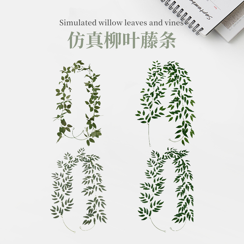 Dekorasi pernikahan bergaya hutan tanaman hijau daun willow buatan terlaris di Amazon daun mawar tanaman rambat dekorasi pemandangan pernikahan tanaman rambat yang melilit