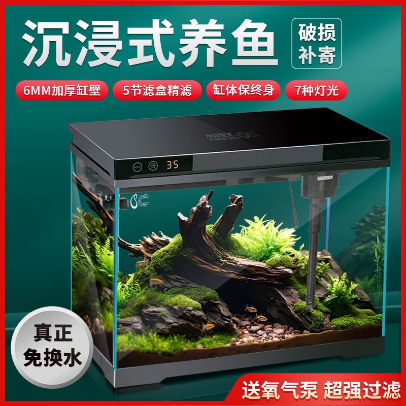 Tangki ikan Minjiang, ruang tamu rumah akuarium sedang dan besar bebas Air filter bawah sederhana modern ringan mewah tangki ikan super putih