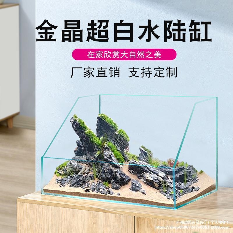 Tangki Air dan Tanah Super Putih Tangki Ikan Ruang Tamu Kaca Aliran Sungai Mikro Lanskap Pemandangan Ekologi Kura-kura Tangki Akuarium Sudut Miring