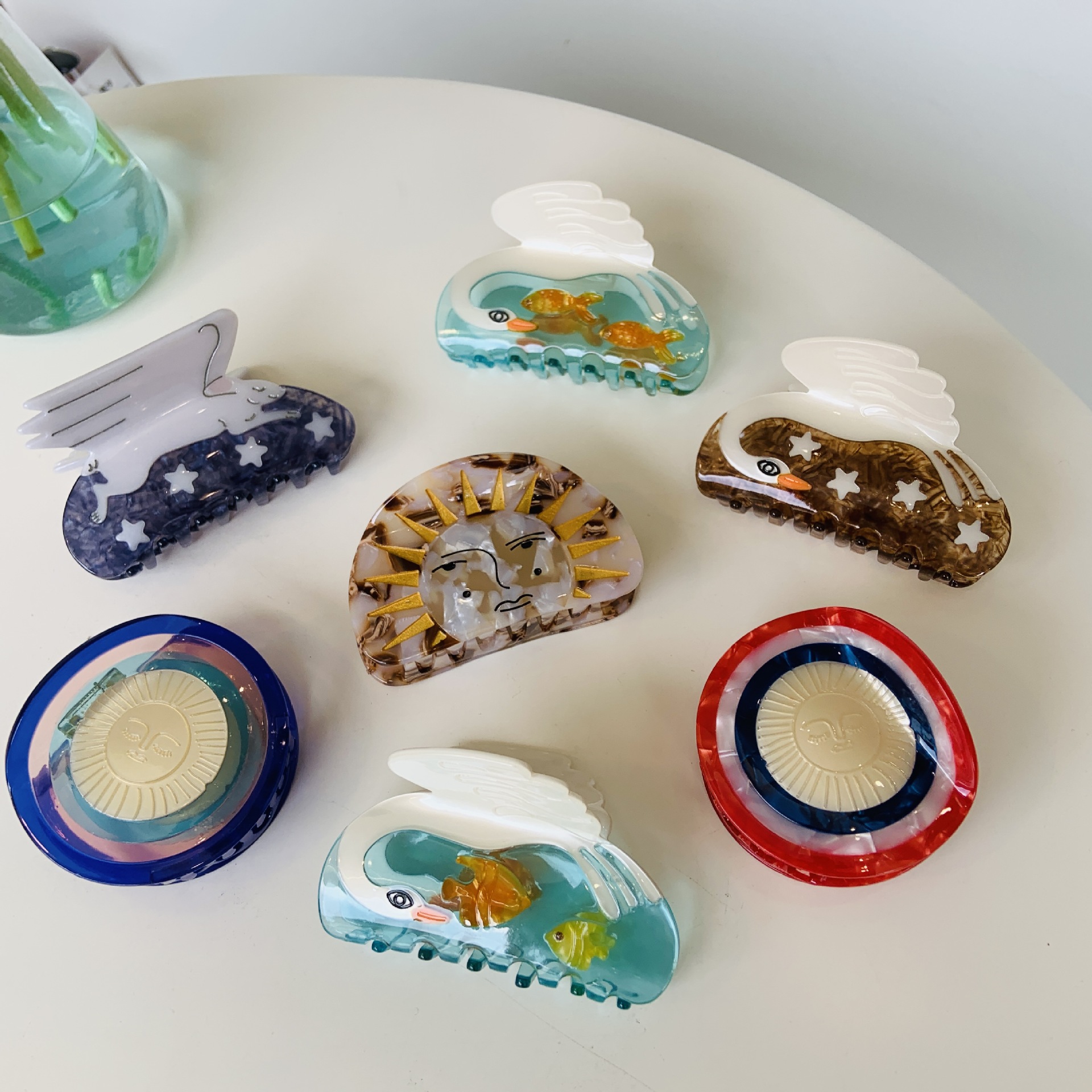 新款太阳醋酸星星抓夹鱼缸星星高级质感发夹复古时尚鲨鱼夹发饰