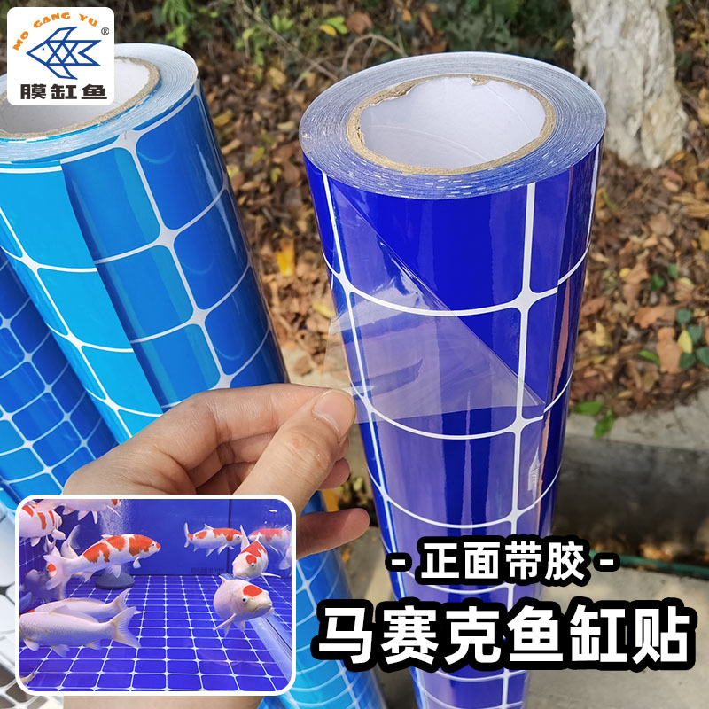 Stiker dekorasi akuarium perekat, stiker perekat latar belakang akuarium kolam laut HD kertas latar belakang tangki ikan biru mosaik