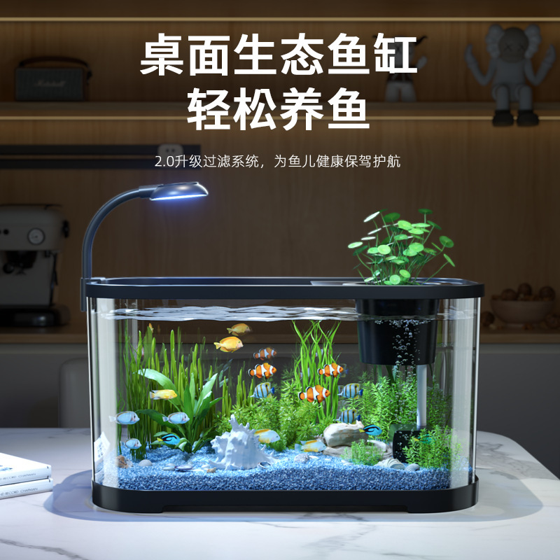 Eco Silinder Desktop Mesin All-in-One Tangki Ikan Kotak Pembiakan Akreik Lansekap dengan Lampu Penyaringan Oksigen Rumah Tangga Transparan Kecil