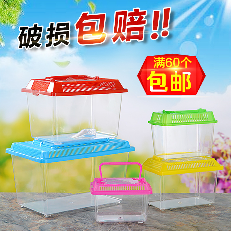 Kotak Hewan Peliharaan Transparan Bernapas Portabel Ukuran Besar dan Sedang Kotak Pengiriman Tangki Penyu Plastik Tangki Ikan Emas Kios