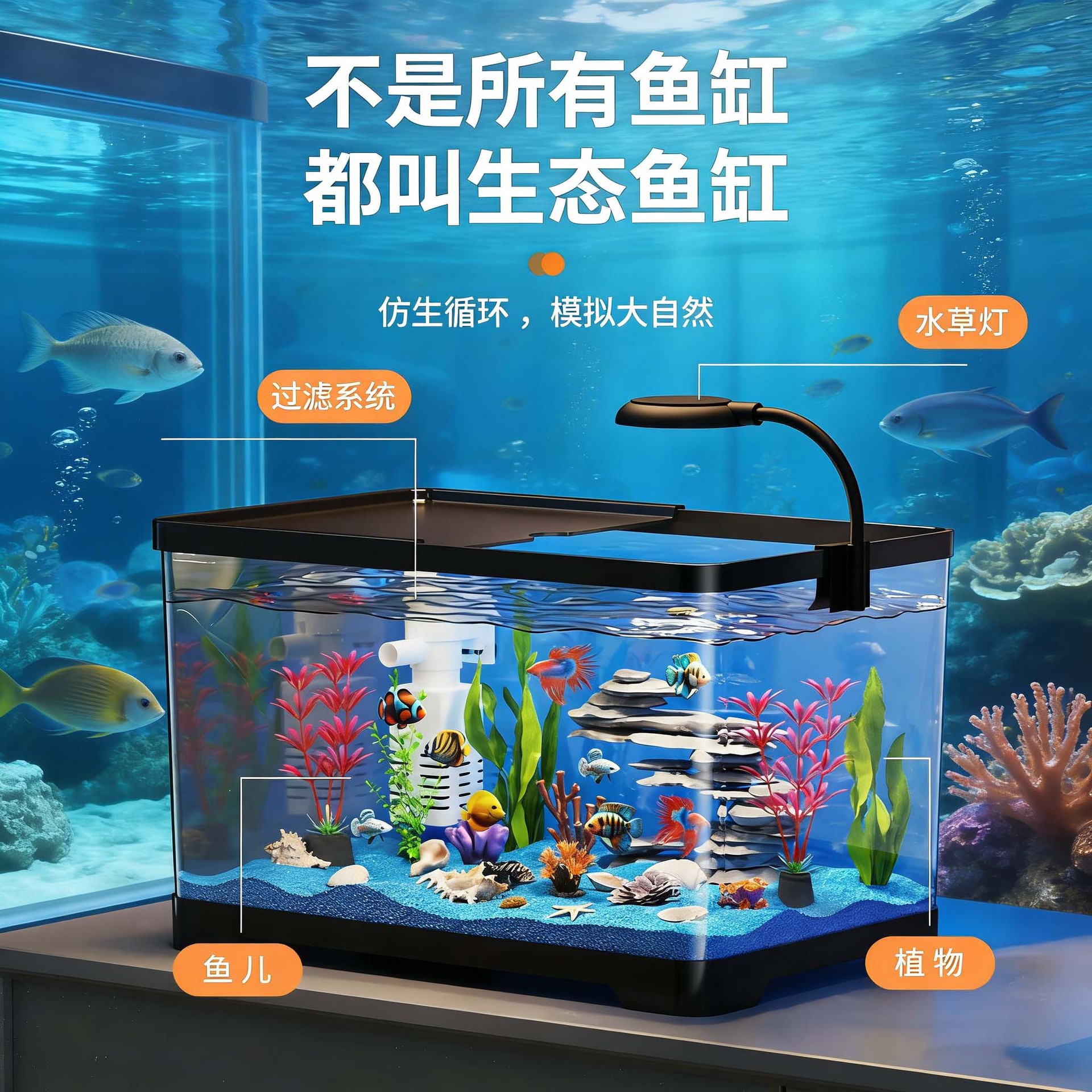 Panci Ikan dengan Filter Oksigen Ruang Tamu Set Lengkap Kaca Imitasi Meja Akilik Kaca Imitasi Panci Ikan Kecil Melihat