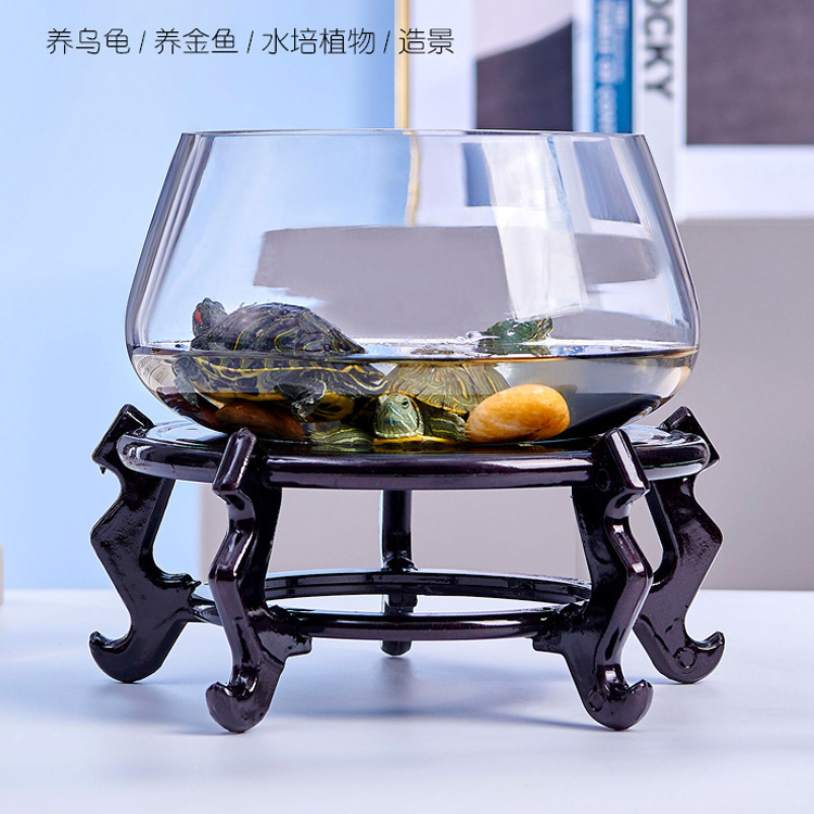 Tangki ikan kura-kura grosir langsung tangki ikan kaca meja bulat ruang tamu hidroponik rumah tangga tangki ikan transparan mini kecil