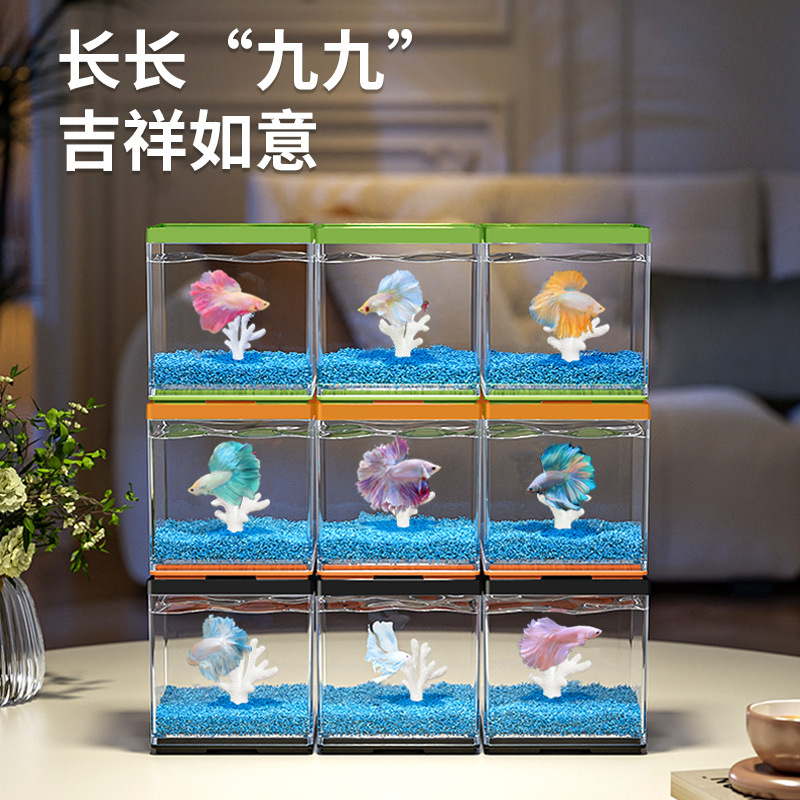 Dalam stok desktop kecil tangki ikan mas kotak terpisah ember independen tangki ikan Merak kotak isolasi makan grosir