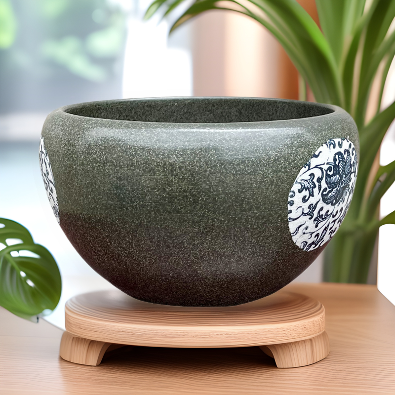 Jingdezhen tangki ikan keramik, panci kura-kura ikan mas desktop dicat tangan 23cm antik tidur air lotus pot bunga lobak hijau