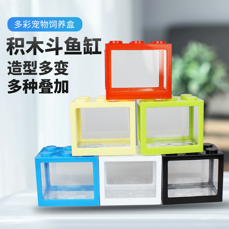 Buket besar blok bangunan tangki ikan akrilik transparan blok bangunan tangki ikan tangki ikan desktop Kreatif plastik kotak Douyu