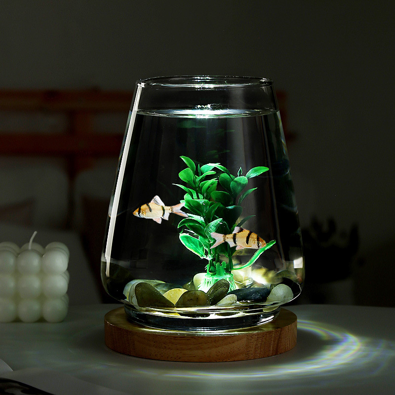 Tangki ikan kaca bulat kreatif Super putih ember kecil kreatif tangki ikan lampu malam mini silinder ruang tamu kantor desktop