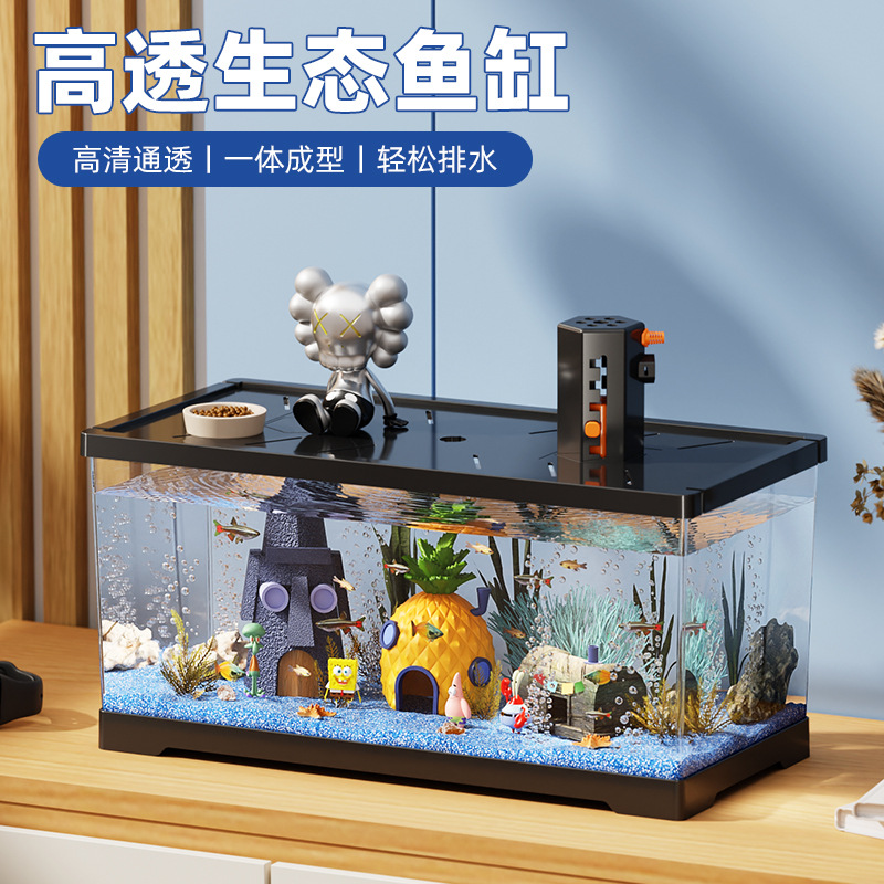 Tangki ikan akuarium meja ekologi kaca ikan mas mini ruang tamu malas gratis perubahan air tangki ikan rumah tangga