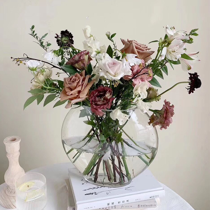 Vas hidroponik lanskap mikro desktop naga telur vas tangki ikan kaca anggur pot bunga kaca bulat transparan mangkuk ikan mas