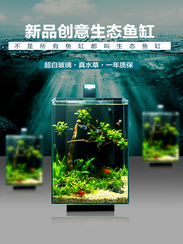 Tangki ikan kaca Super putih tangki air ekologis kecil tangki air super putih dan tangki tanah tangki ikan emas tangki ikan desktop tangki ikan