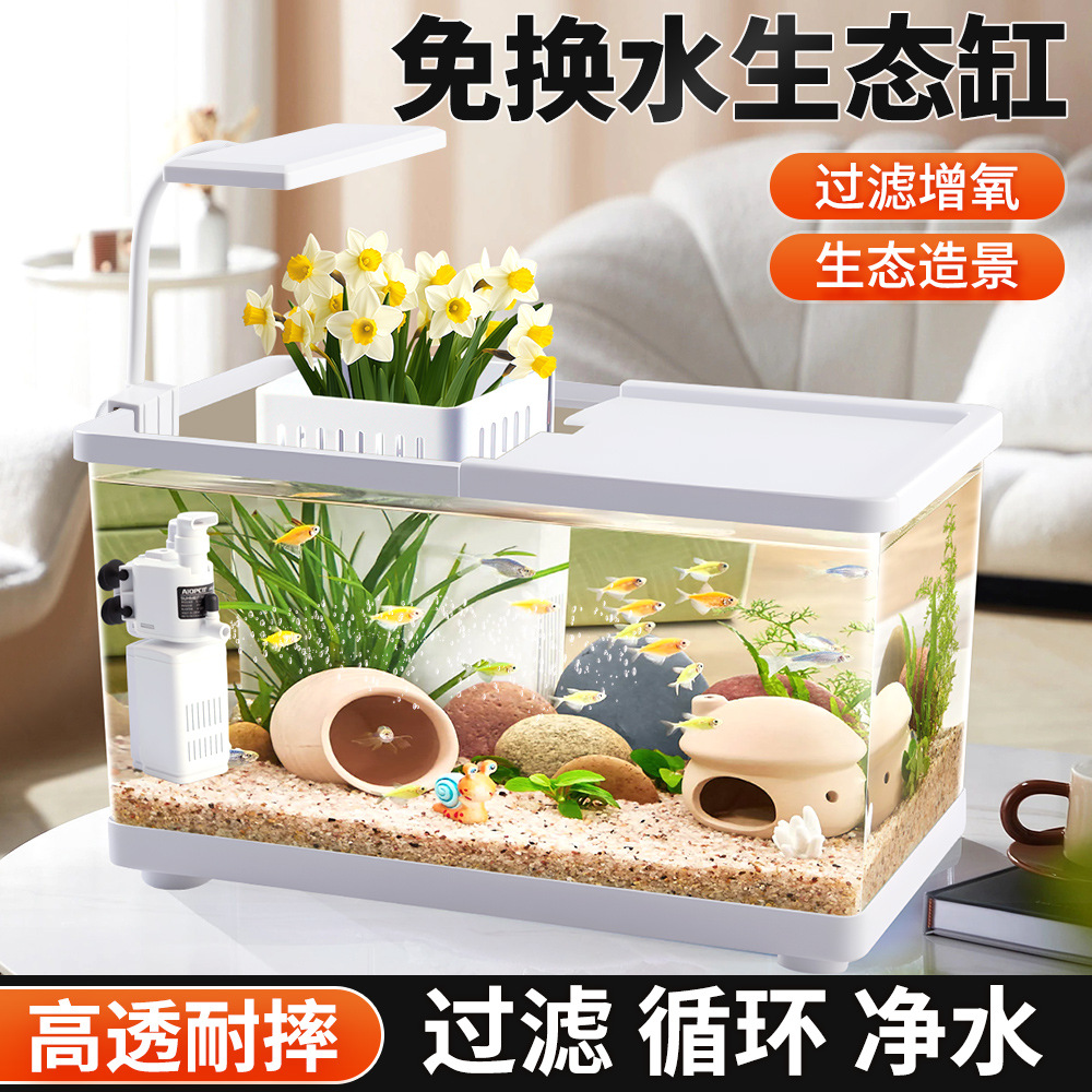 Akuarium Akuarium Ekologis Meja Ikan Emas Orang Malas Plastik Balkon Transparan Ruang Tamu Tangki Pemandangan Ruang Keluarga Ukuran Kecil dan Menengah Rumah Tangga