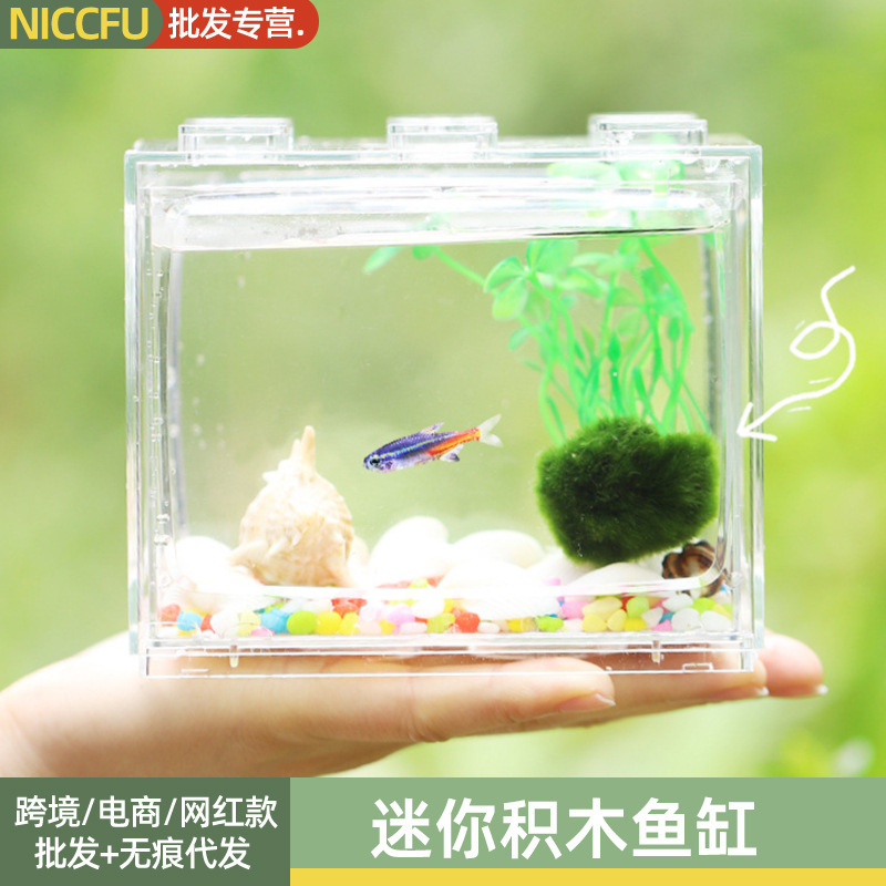 Kotak blok bangunan akrilik tangki ikan Douyu Thailand tangki ikan jahitan kecil desktop lanskap tangki set Douyu tinggi transparan