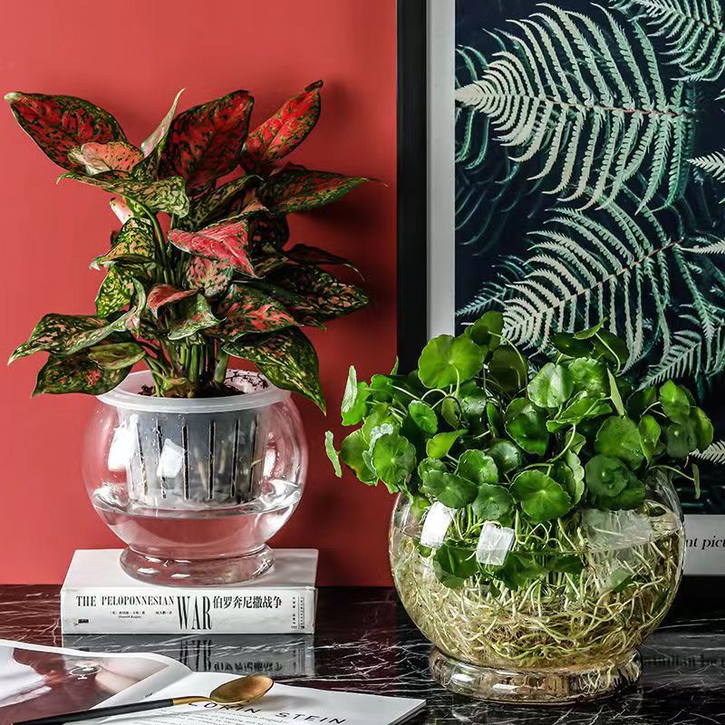 Pot bunga bola kaca hidroponik tanaman lobak hijau transparan vas kaca besar wadah tangki ikan air desktop