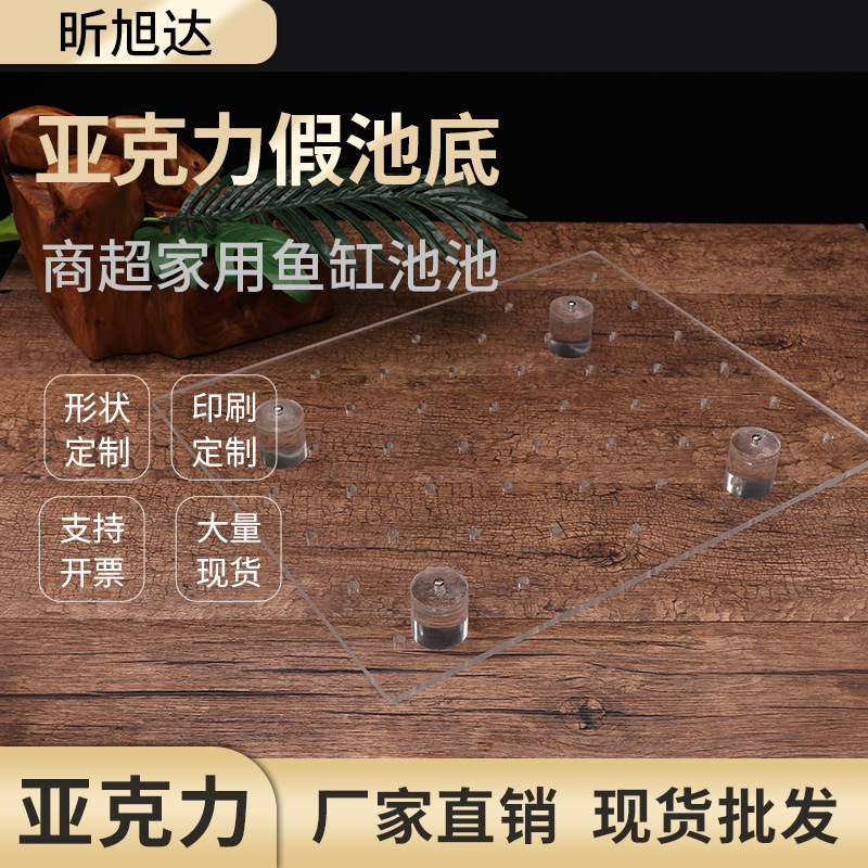 Tangki ikan akrilik transparan dengan lubang, kolam ikan meja teh akuarium makanan laut tampilan terpisah dasar palsu kustomisasi grosir