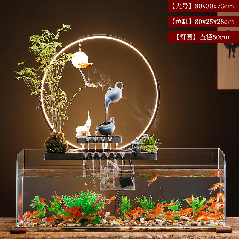 Tangki ikan ruang tamu rumah tangga kecil desktop kaca mini lansekap satu klik pertukaran air besar akuarium kolam ikan mas