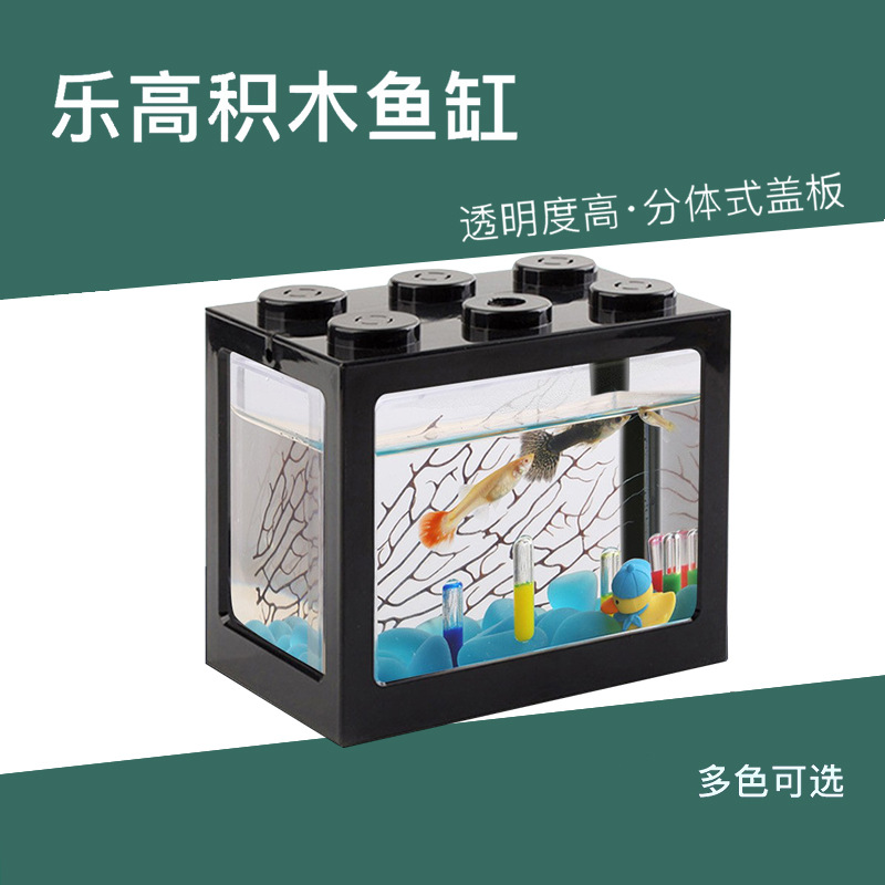 Kotak blok bangunan kecil tangki ikan Thailand tangki ikan khusus Douyu meja kecil Lego ekologis lanskap kreatif tangki ikan kecil