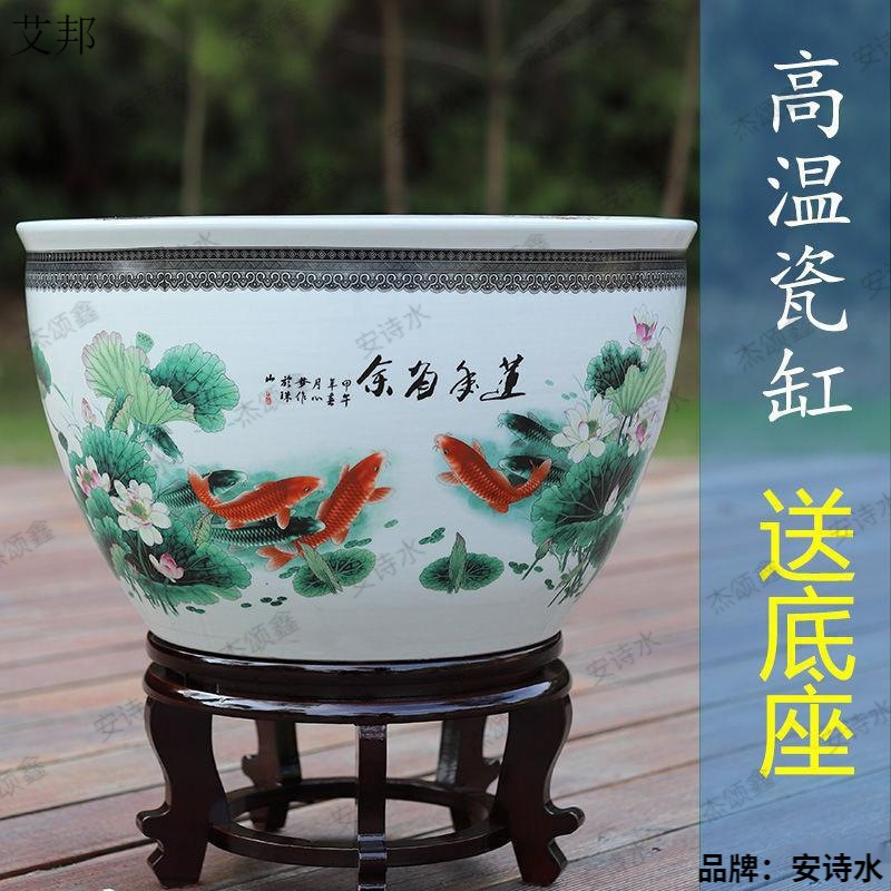 Keramik besar tangki Jingdezhen ikan tangki air ekstra besar pot Lotus pot koi rumah tangga ruang tamu tangki lantai grosir