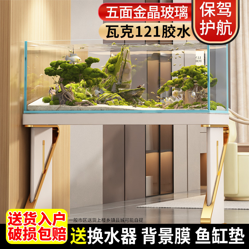 Akuarium Ekologis Kaca Ekologis Super Putih Filter Bawah Partisi Lantai Rumah Tangga Besar Ruang Tamu Model Baru 2025