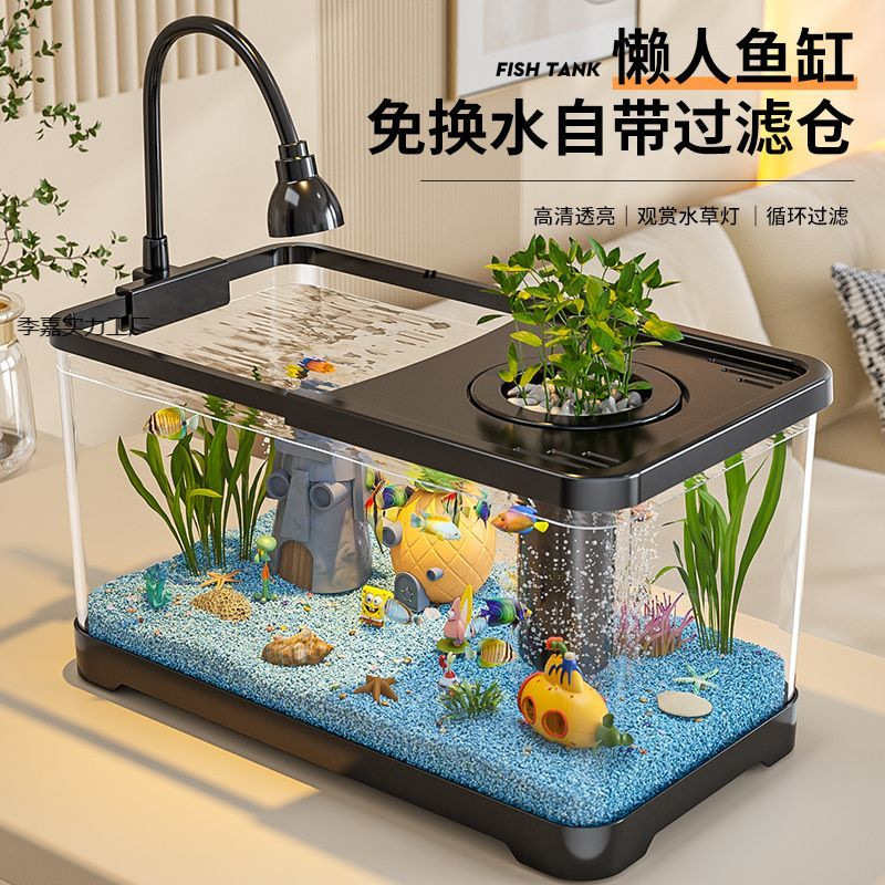 Tangki ikan ruang tamu desktop kecil super putih ekologi akrilik ikan mas akuarium rumah 2023 set lanskap baru