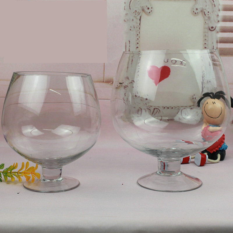 Kaca anggur transparan bentuk persik berbentuk piala vas kaca kaca kaca anggur besar tangki ikan emas dengan kaki bulat kaca tangki ikan