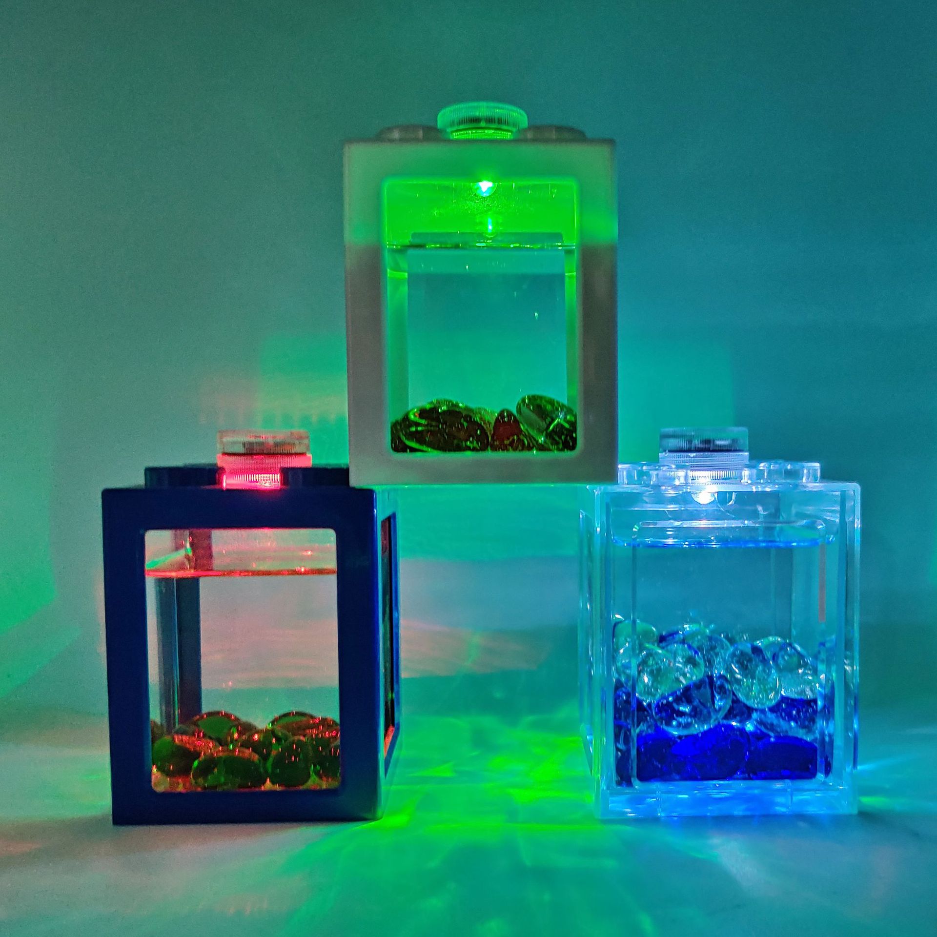 Blok bangunan tangki ikan kecil dapat ditumpuk lanskap plastik ember silinder tangki ikan rumput laut kotak USB antarmuka crawler silinder dengan lampu LED