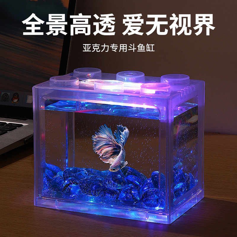 Ember transparan akrilik setelan tangki ikan meja kantor blok bangunan tangki ikan kecil dengan lampu LED tangki ekologi bola rumput laut