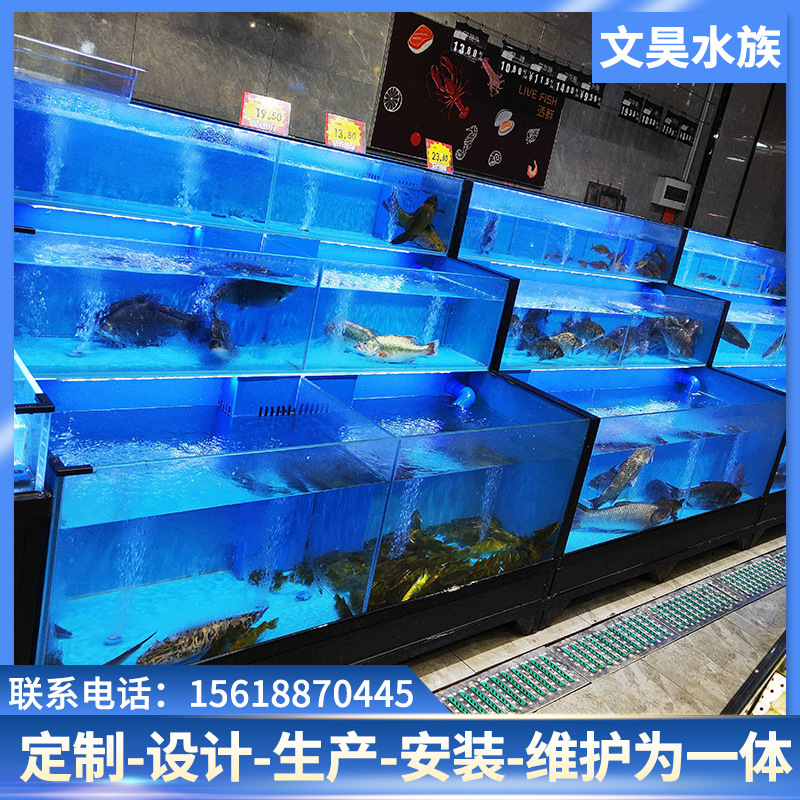Tangki ikan kaca restoran tetap kolam makanan laut akuarium komersial tangki makanan laut filter sirkulasi terintegrasi pendingin