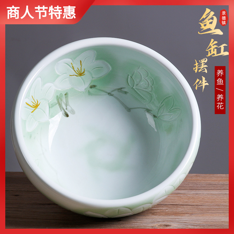 Jingdezhen tangki ikan keramik yang dilukis dengan tangan, panci kura-kura ikan mas besar keberuntungan mangkuk tidur pot lotus peri air