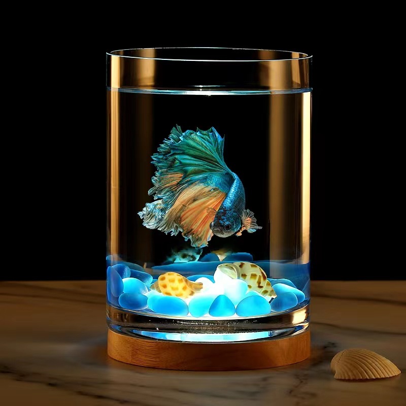Botol ekologi Desktop hadiah kreatif kantor tampilan mikro silinder putar tangki ikan ember tangki ikan Mini tangki ikan kecil